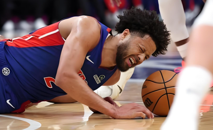 珀尔特尔争抢篮板时面部与对手手臂相撞,随后掩面倒地不起