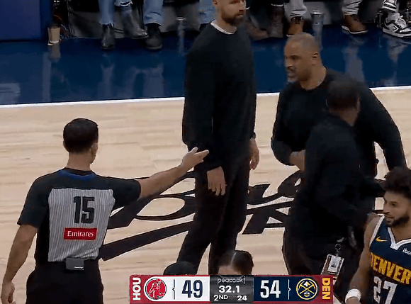 申京篮下进攻未果,乌度卡不满裁判抱怨与申京双双吃T
