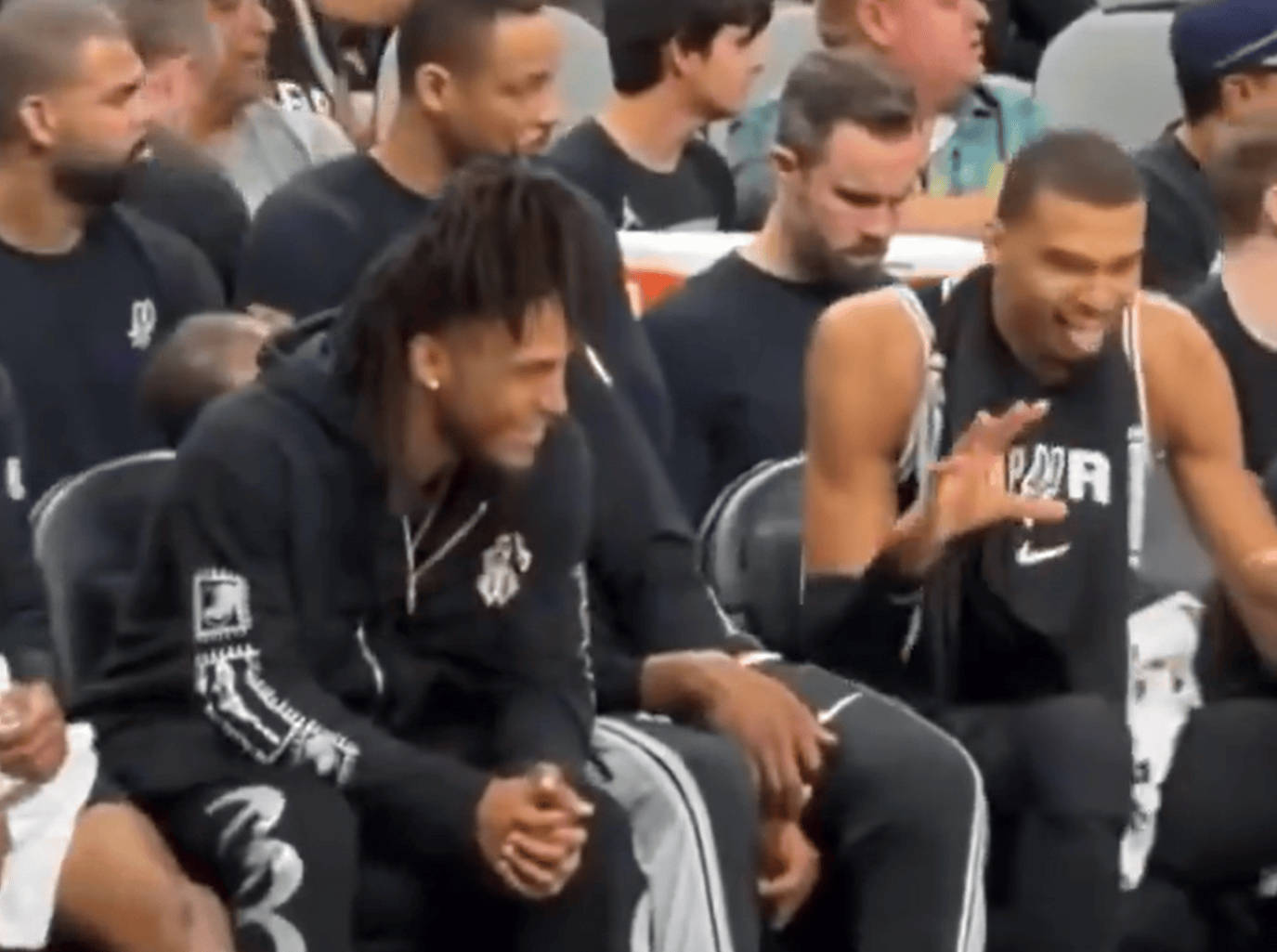 太会整活!昨日文班替补席和卡斯尔玩闹,搞怪模仿小狗吐舌