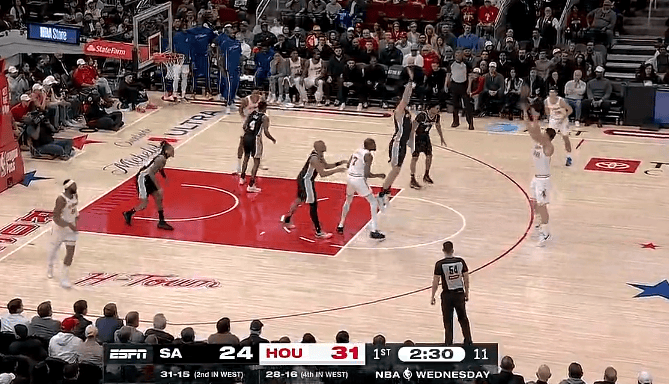 火记:火箭本场禁区命中率为40.6%,下半场仅尝试了6次三分