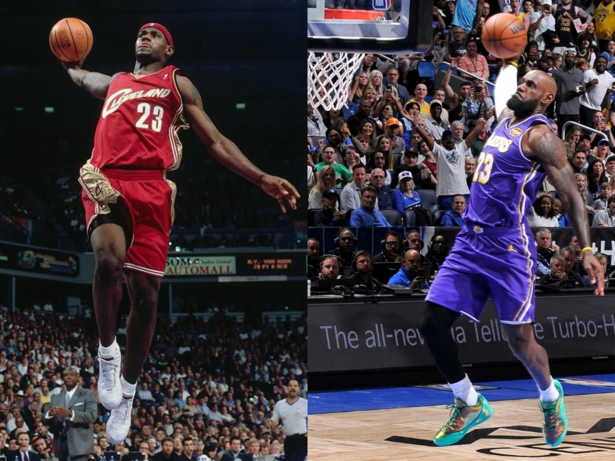 历久弥坚!NBA社媒分享詹姆斯生涯首场&第1612场比赛扣篮照