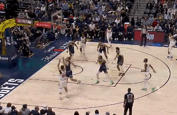 约基奇跑位到弧顶超远三分干拔不中,比赛进入加时赛