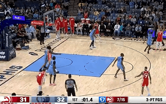 麦科勒姆超远干拔三分不中,老鹰首节31-32落后于灰熊