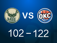 [赛后]雷霆122-102雄鹿,亚历山大40分7板11助,阿德托昆博19分14板7助
