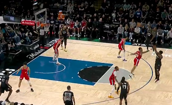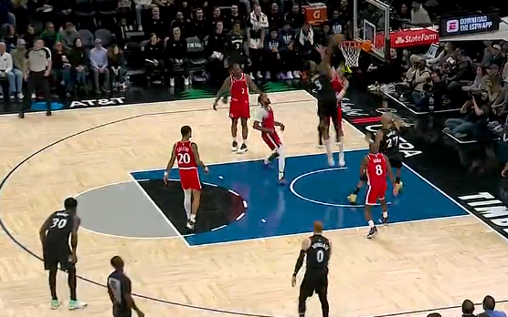 多森姆弧顶借挡拆出手三分,森林狼生涯首次命中三分球