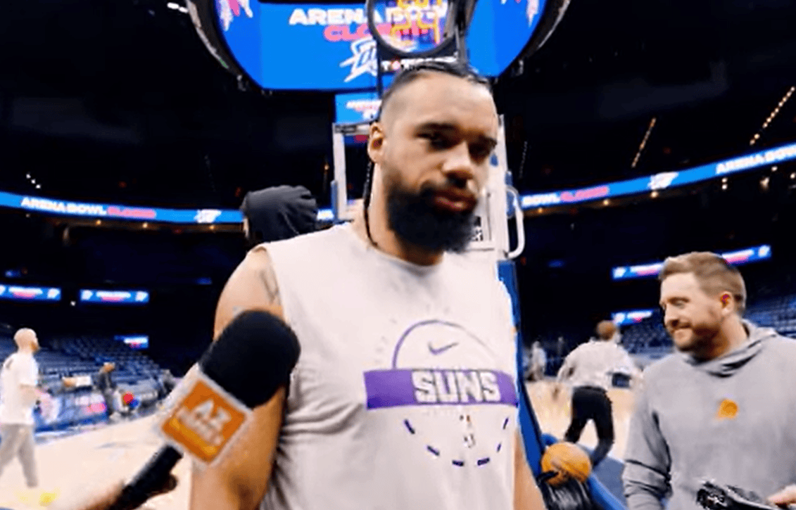 坎宁安次节在替补席休息,胸部和背部裹着厚厚的绷带