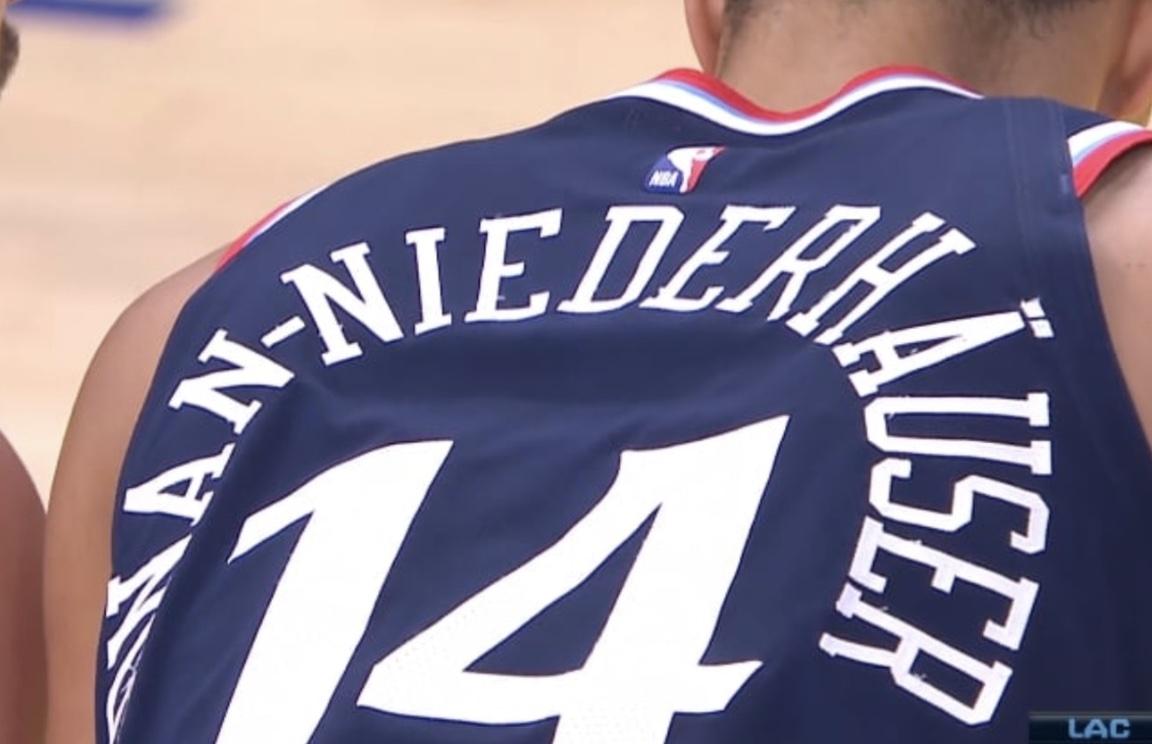 美媒晒图:快船新秀尼德豪泽球衣上姓氏长度与SGA并列第一