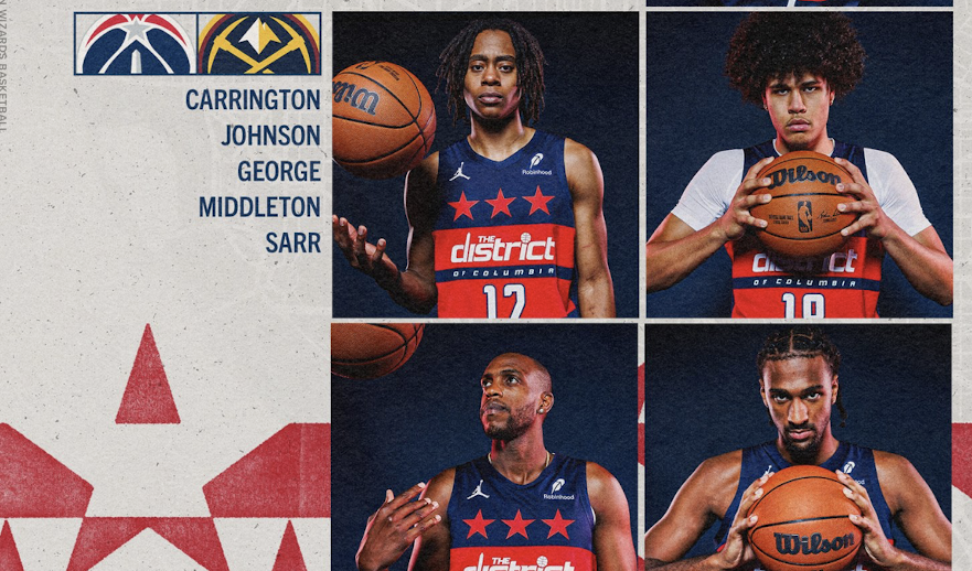 奇才首发:卡林顿、特雷-约翰逊、乔治、米德尔顿、萨尔