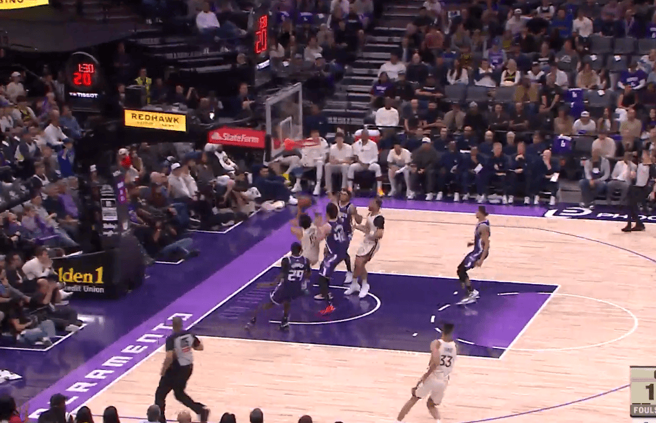虎扑肯纳德助攻艾顿双手暴扣,个人已得到19分3助攻