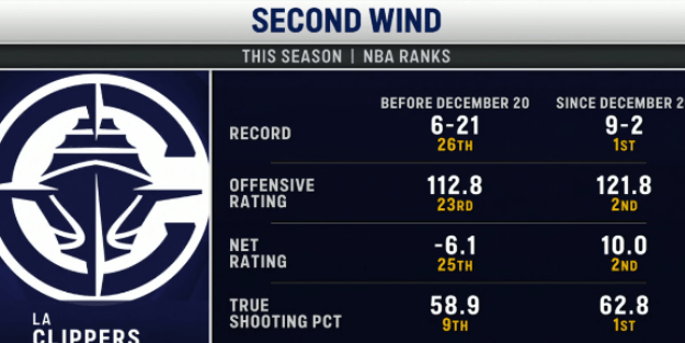 判若两队!快船近11场战绩9-2、真实命中率都排同期联盟第一