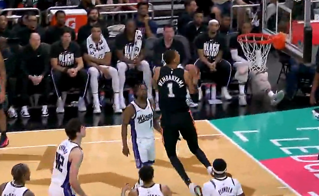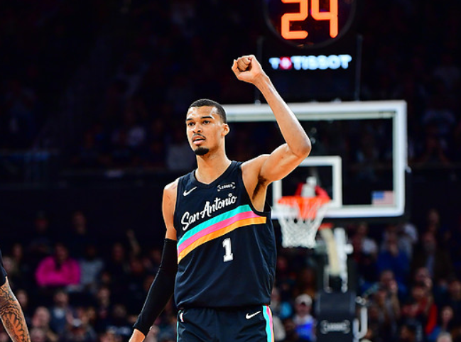 文班亚马轻松突破上演大风车灌篮,砍下24分13板5助1断4帽