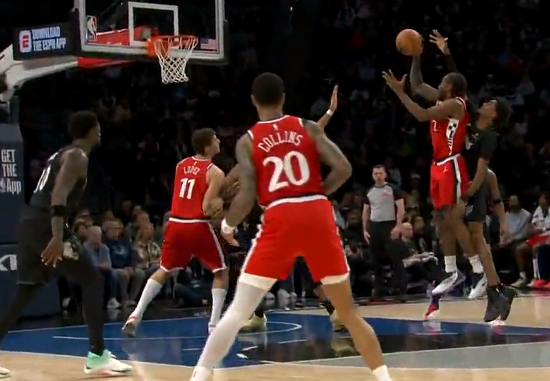 巴雷特全场15投7中,三分5中2砍下20分8篮板5助攻1抢断