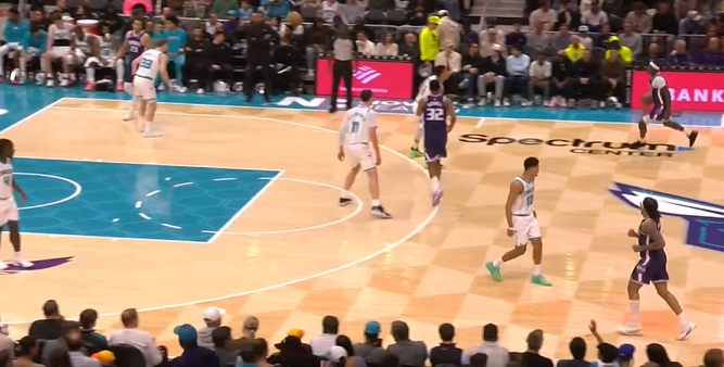 黄蜂第四节开局轰出一波9-0,已经领先国王多达46分