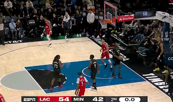 多森姆突破上篮不中,快船首节以23-19领先森林狼