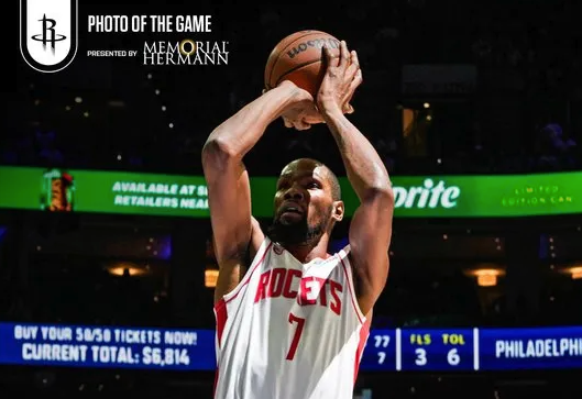 火箭轮换阵容出场次数:阿门&奥科吉&谢泼德全勤,KD为39场
