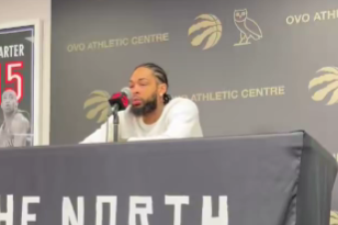 布伦森造成犯规后出手打成2+1拿到11分,尼克斯首节落后9分