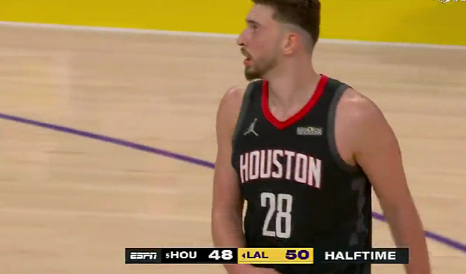 半场战报:湖人50-48领先火箭,詹姆斯6分10助攻&申京11分
