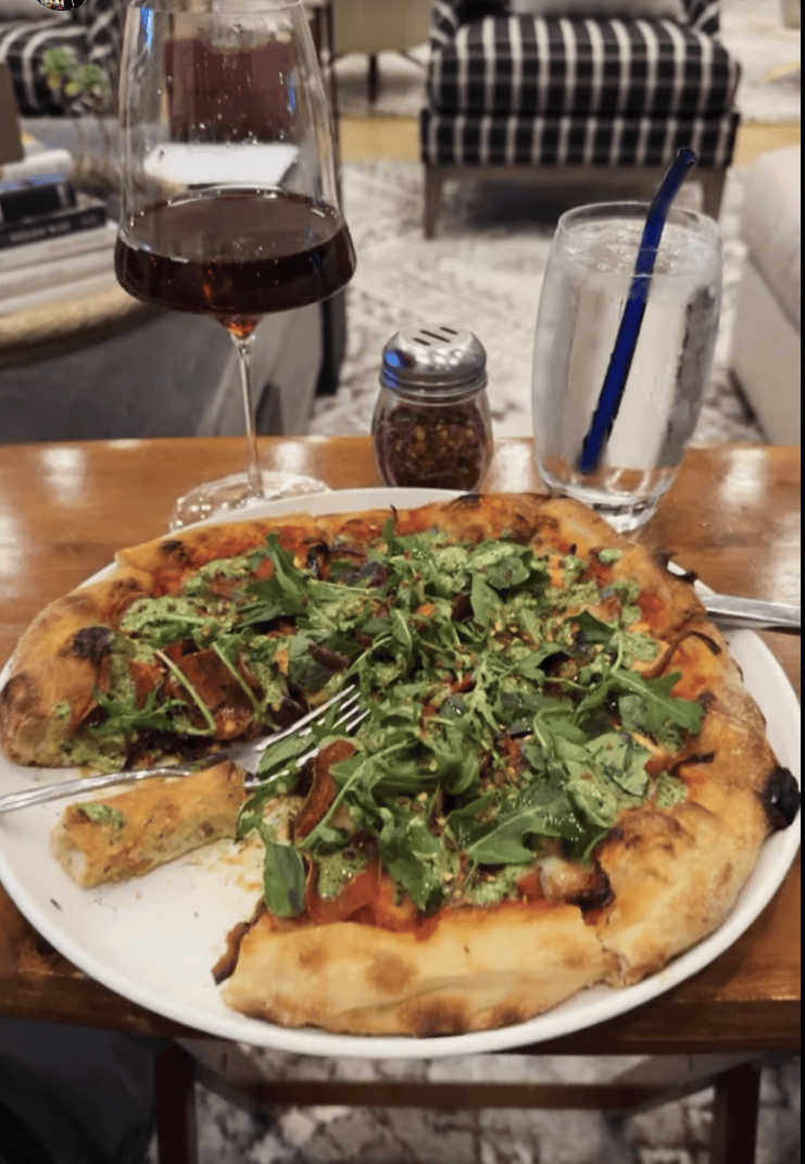 惬意!詹姆斯更新社媒,晒出吃披萨喝红酒的照片