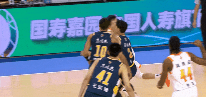 陈林坚三分线外晃过对手投篮命中,山东41-37领先广厦