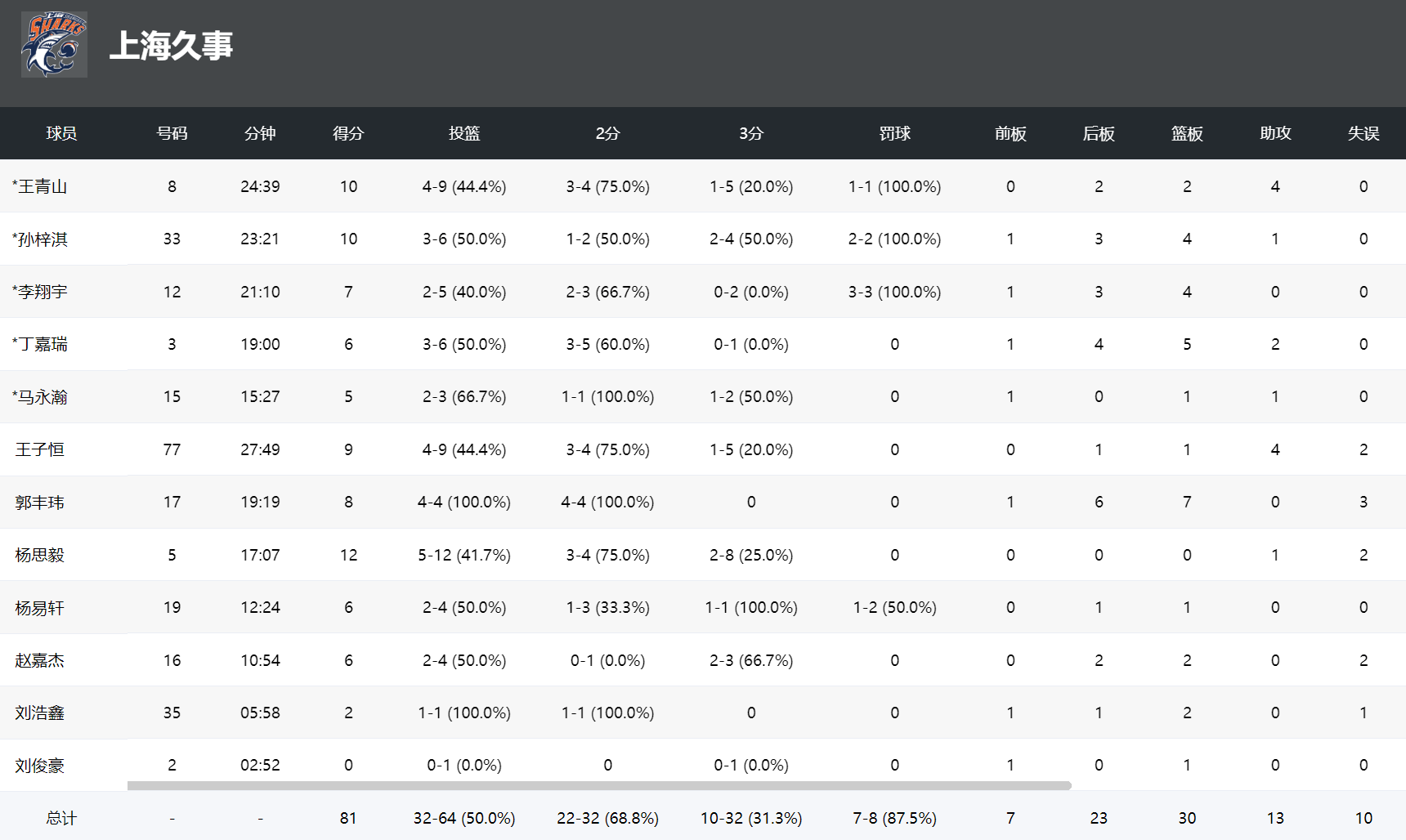 四川全队首节合计仅得到7分,暂时落后上海25分