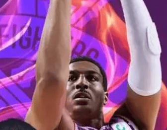 FIBA社媒分享赛场精彩瞬间:小米克尔-布朗隔扣比自己高17cm的内线