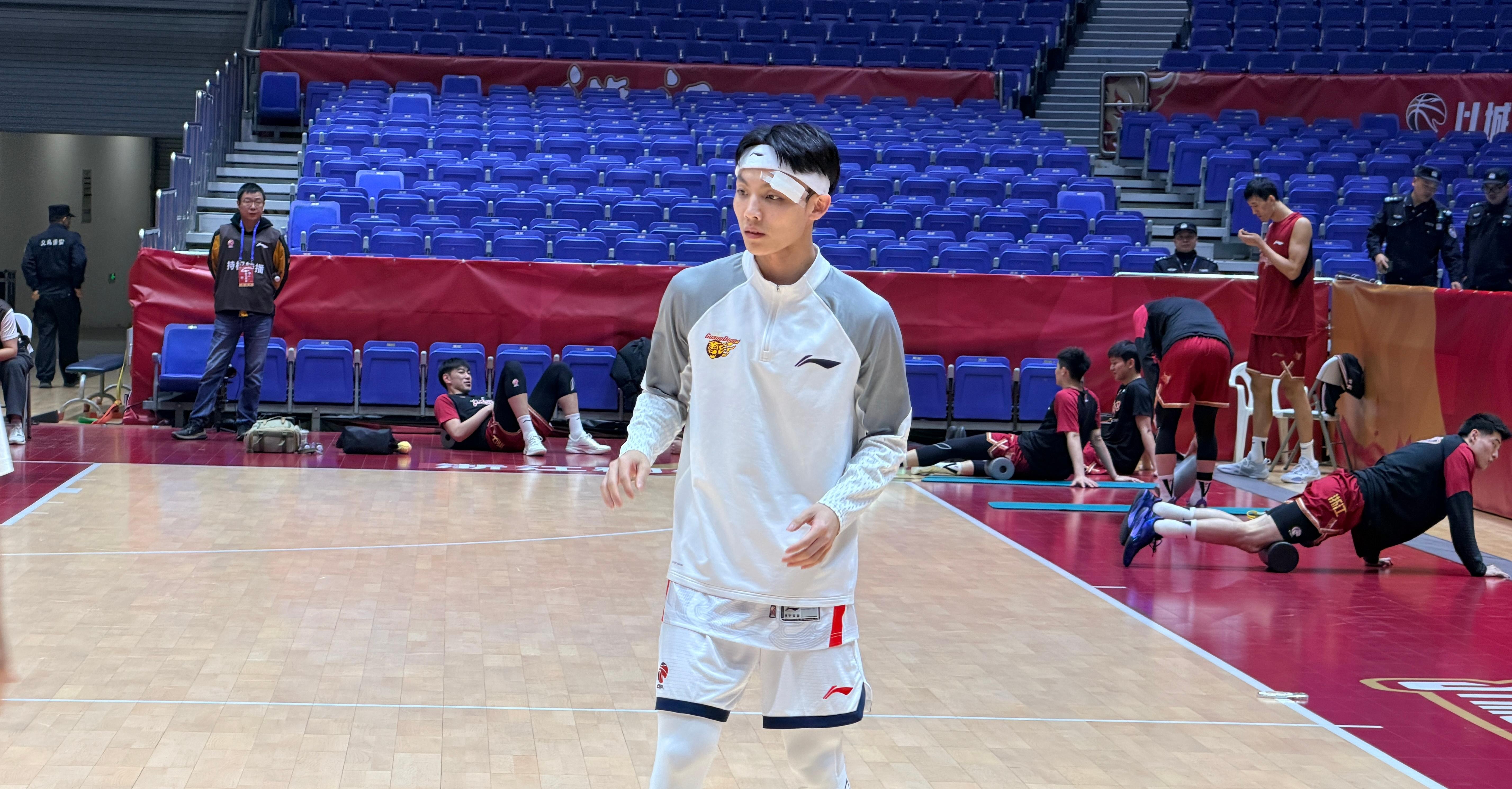 广东男篮队记社媒分享徐杰热身图,包扎眉骨&头戴发带