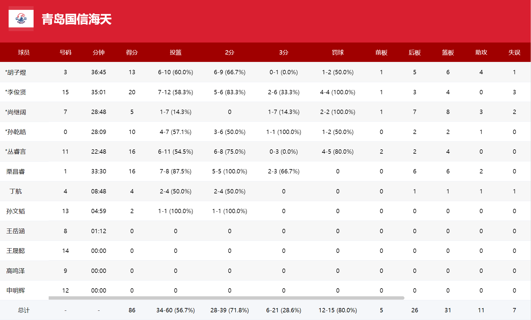 U19全国赛:李俊贤20分,青岛U19男篮86-59大胜深圳U19男篮