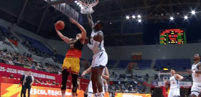 郭昊文欲上篮被对手大帽扇飞,目前12投仅3中得到9分