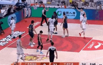 奎因篮下造成犯规两罚全中,广东客场开局9-0领先广厦