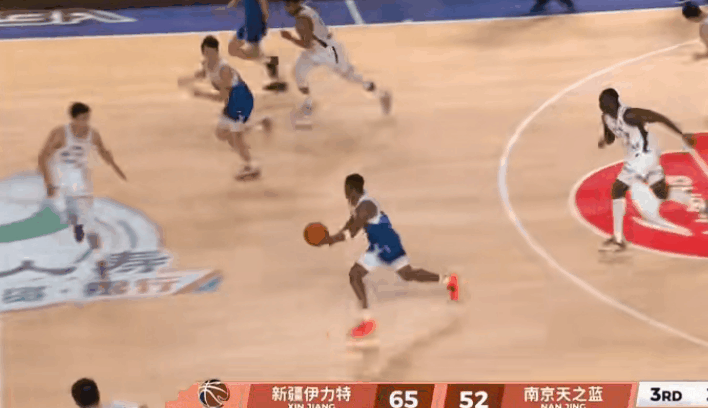 虎扑新疆男篮快速反击,纳托尔精彩抛传,伊力福拉提上篮得手