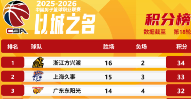 广厦、上海今日齐齐输球,前三名球队胜场差仍在1场