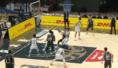 鄢手骐右侧突破上篮不中,莫兰德跟进补篮命中