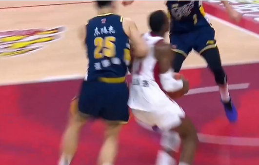胡明轩反击一条龙持球向前,被奈特的手打到脸部和头部