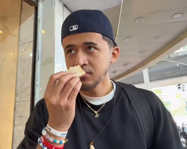 卡米然社媒分享视频并配文:第一次尝试广东早茶
