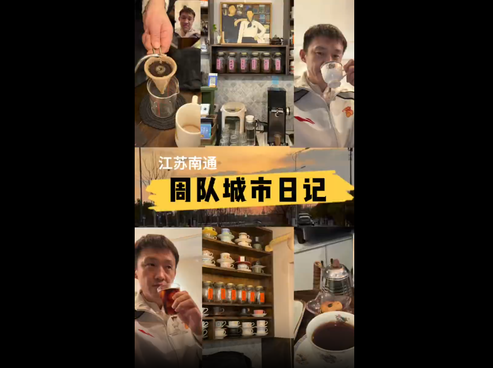 周鹏社媒分享视频并配文:喝杯咖啡的时光,思考篮球和人生
