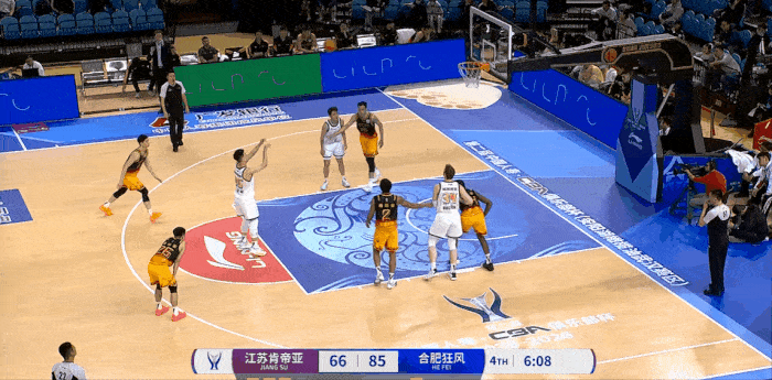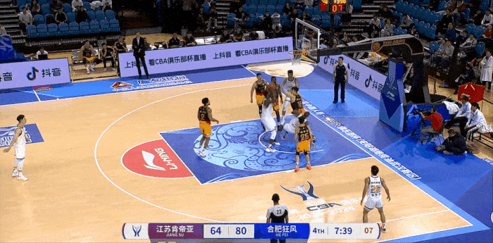 陈家政抢断后快攻上篮不中,徐杰顺势补篮命中打停江苏