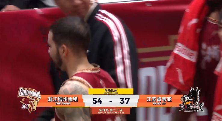 CBA常规赛:约克11分&马国栋10分,浙江半场54-37领先江苏