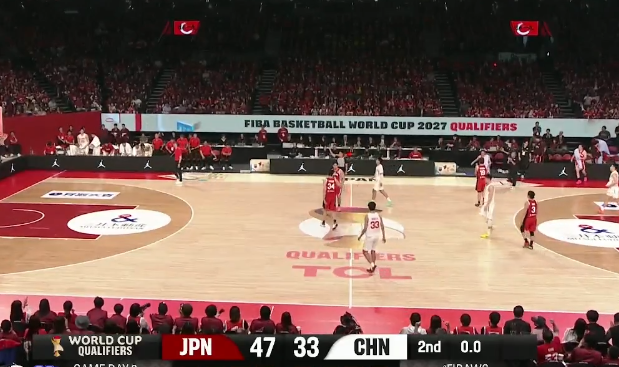 世预赛:廖三宁8分&赵睿8分,中国男篮半场33-47落后日本