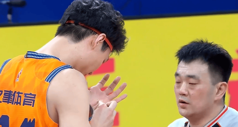 王哲林防守时隐形眼镜被打掉,随后直接返回更衣室