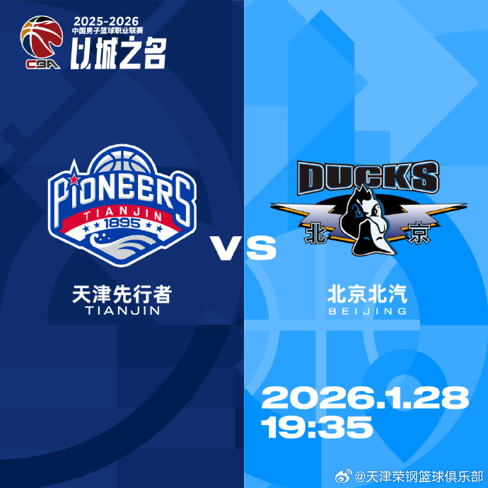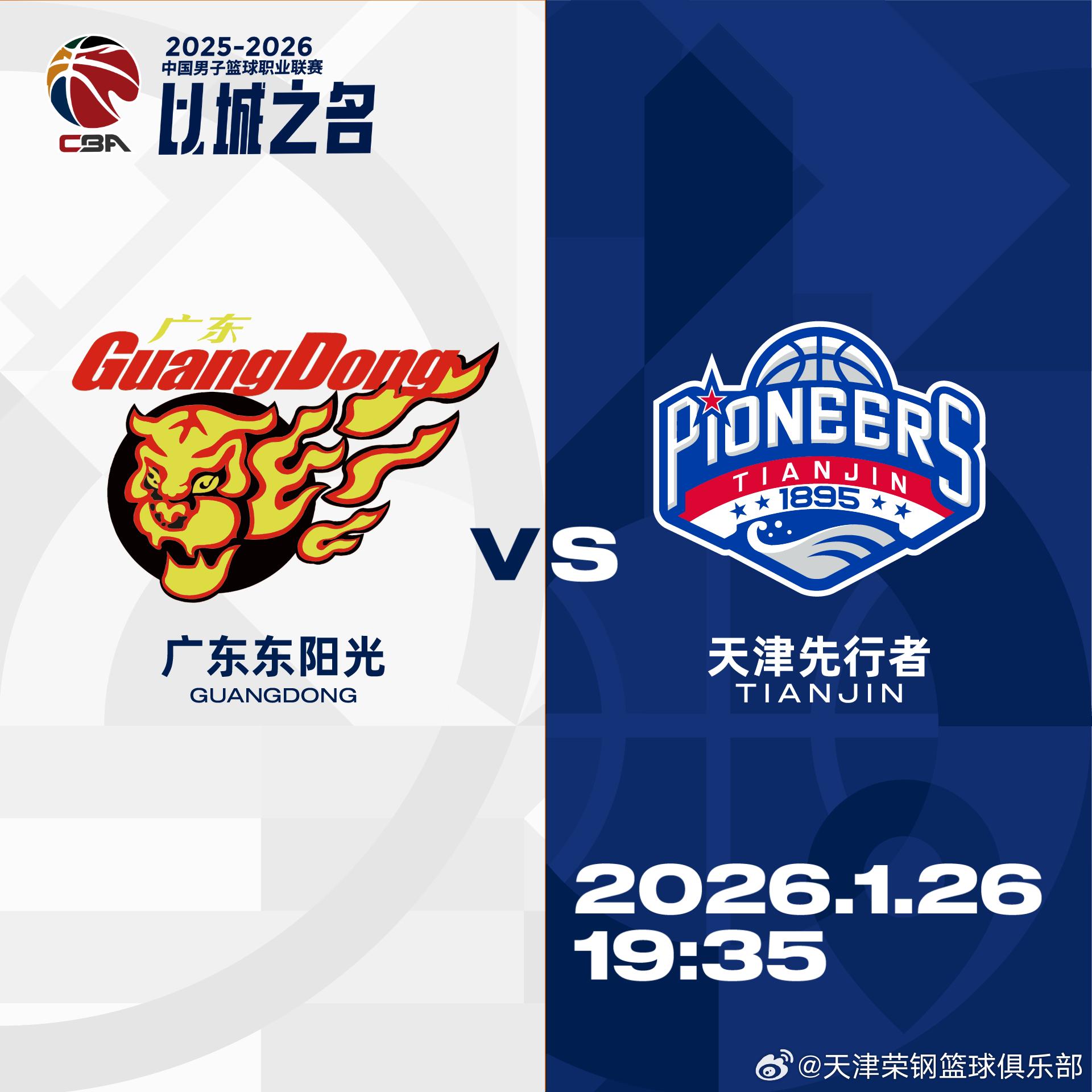 天津男篮社媒分享比赛预告:今晚球队将对阵广东男篮