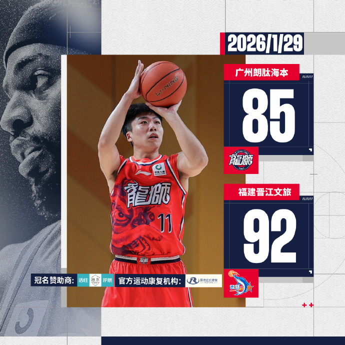 广州男篮发布本场比赛失利海报,常规赛战绩来到10胜10负