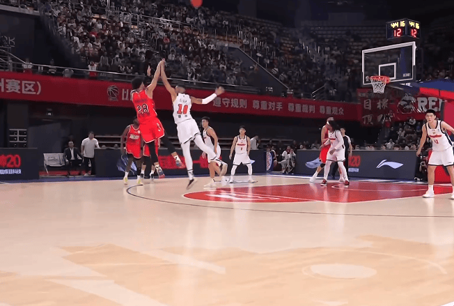 胡金秋弧顶接球三分投进,广厦37-21领先辽宁至16分