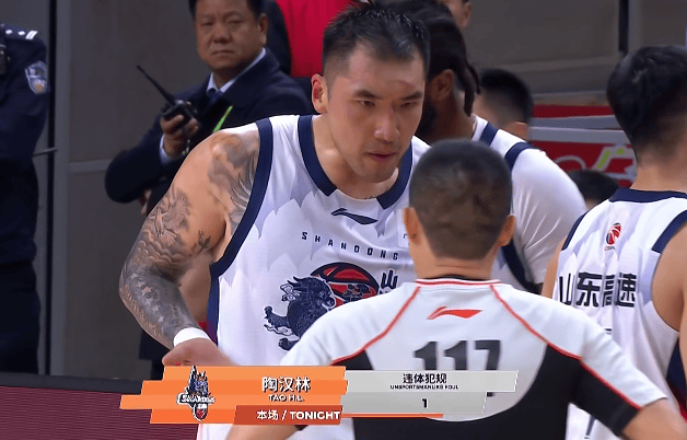 虎扑陶汉林对萨林杰犯规被升级为违体,广东剩5分钟领先山东2分