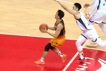 袁照耀顶着李晓旭上篮打成二加一,广州队追至10分分差
