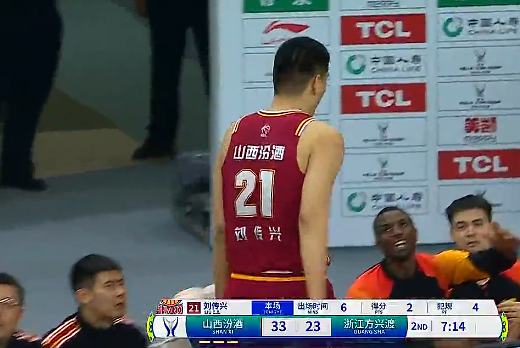 王欣瑞突破造成刘传兴犯规,后者出战6分钟身背4犯被换下