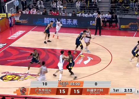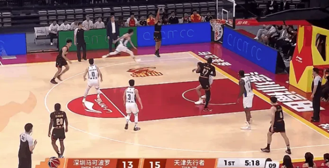 贺希宁三分线外一击命中,深圳队16-15反超天津1分