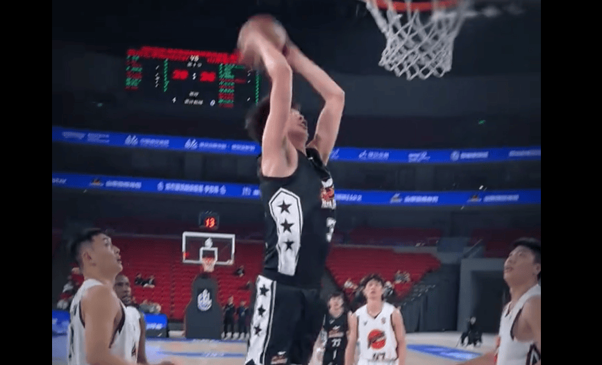 全运会男篮:韩德君挡拆顺下接球,直接起飞完成单臂劈扣