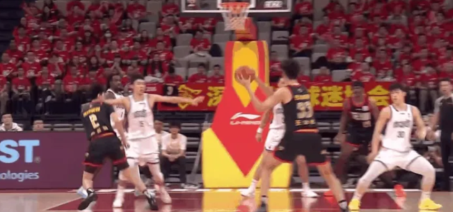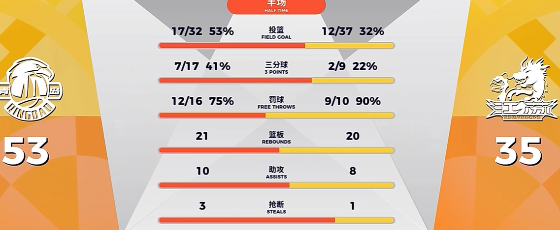 贾尔斯压哨抛投不中,青岛半场53-35领先江苏
