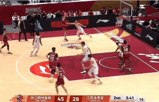 程帅澎接球三分投进,浙江上半场48-28领先江苏20分