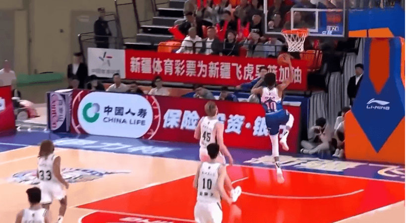 一寸长一寸强!奎因空切顺下,迎着杨曦皓完成炸裂隔扣